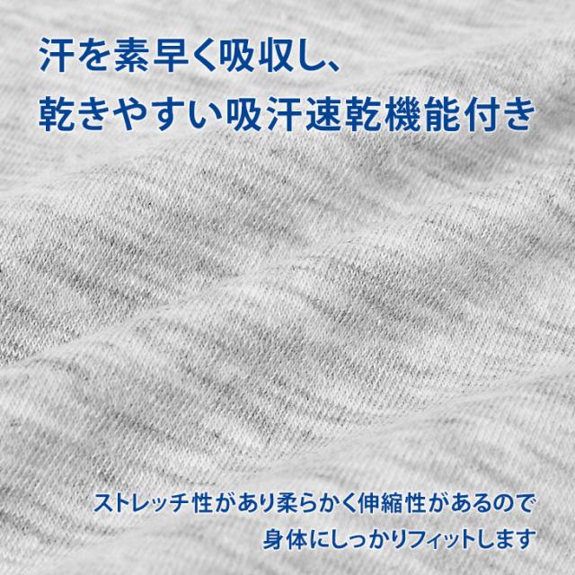 汗を素早く吸収し、乾きやすい吸汗速乾機能付き。
