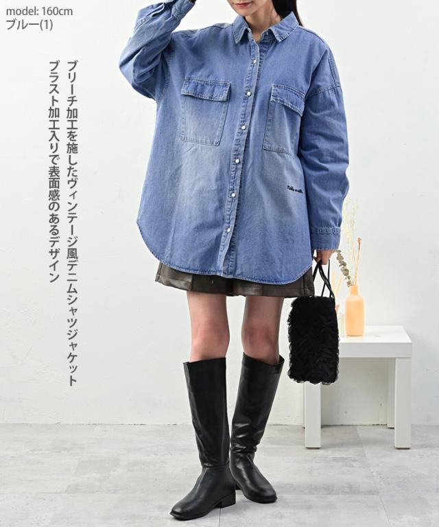 ブリーチ加工を施したヴィンテージ風デニムシャツジャケット