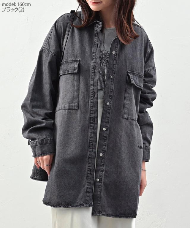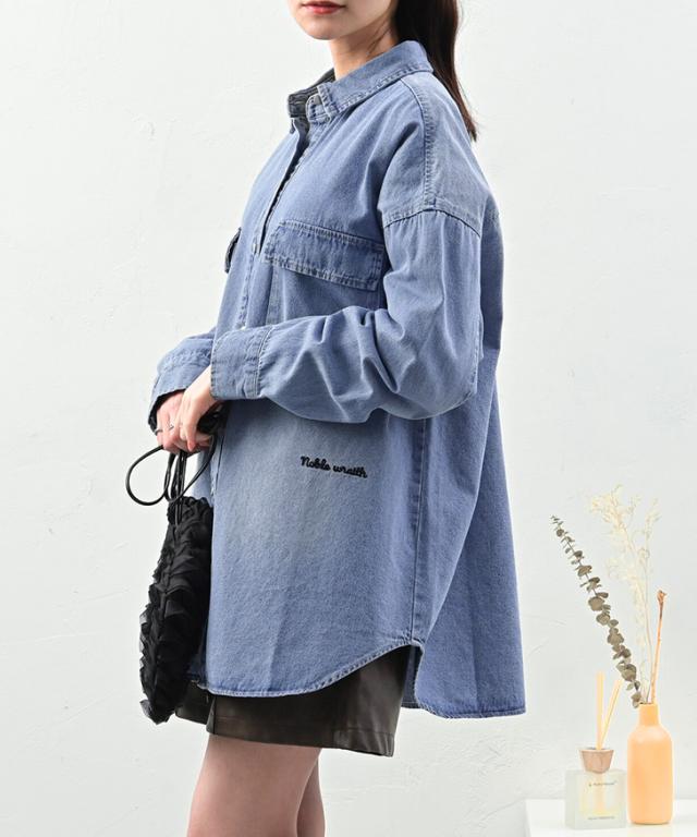 新作 ロゴ刺繍オーバーサイズデニムシャツジャケット レディース アウター 春 秋 羽織り 上着 ジージャン Gジャン 長袖 ロング丈 大きめ 大きいサイズ ゆったり 体型カバー カジュアル きれいめ 可愛い 古着風