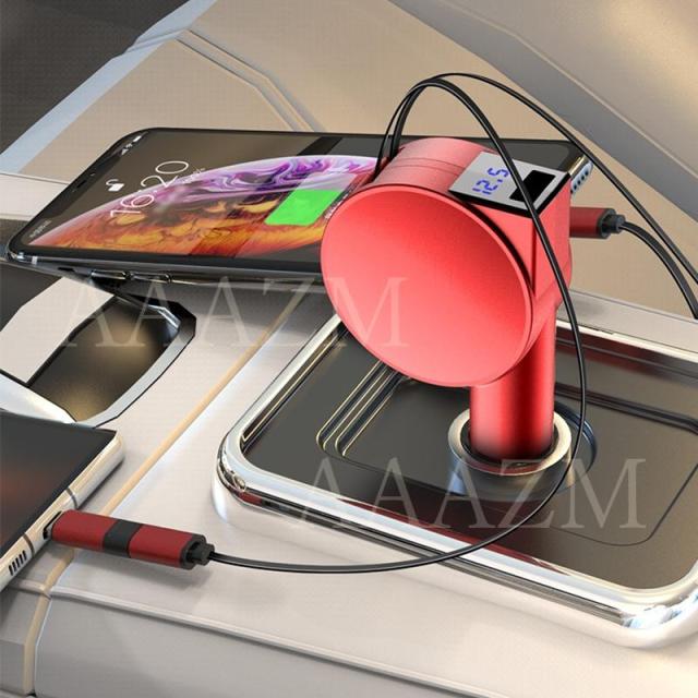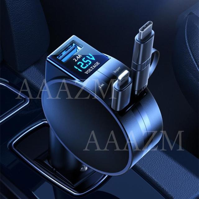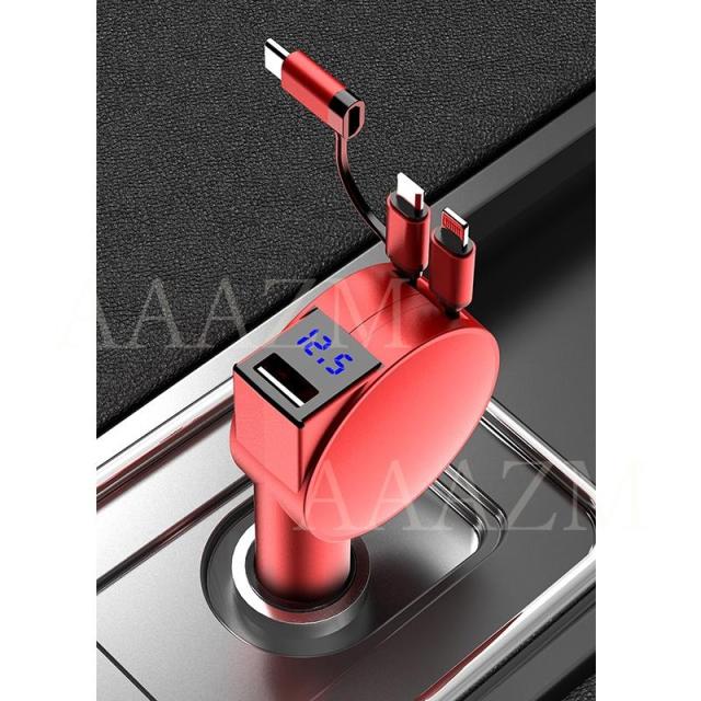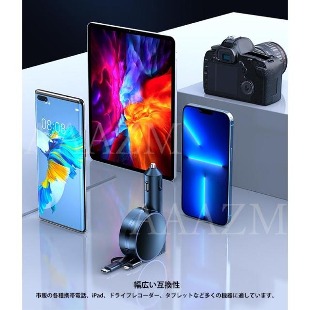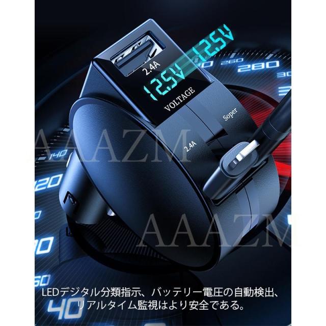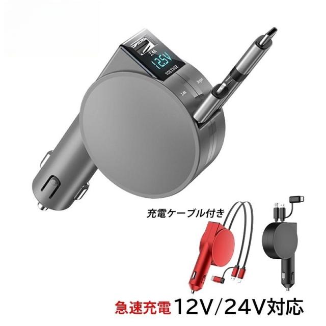 シガーソケット USB 延長 車載充電器 小型 Type-c Android PD Lightningケーブル カーチャージャー 急速充電 電圧表示 電圧計 12V 24V 車 自動車 シガーライター