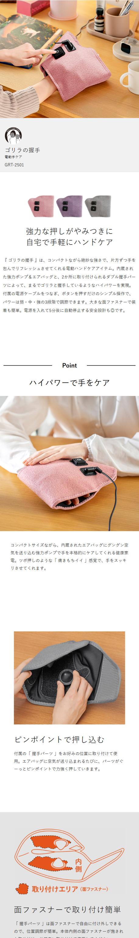 [ ゴリラ シリーズ ゴリラの握手 ]ゴリラの握手 手のひらマッサージ ハンドマッサージ機 ツボ押し グッズ 手のひら 加圧 ハンドケア ごりら 健康家電 電動 疲れ リラックス 自宅 コンパクト ハイパワー GRT-2501 ドウシシャ