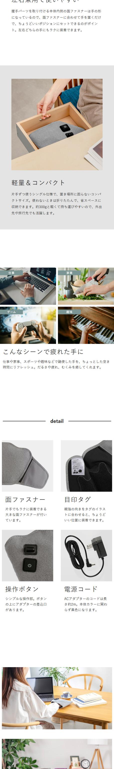 コンパクトながら絶妙な強さで、片方ずつ手を包んでリフレッシュ◎。内蔵された強力ポンプ&エアバッグで、まるでゴリラと握手しているようなハイパワーを実現。力強い押しがやみつきに。