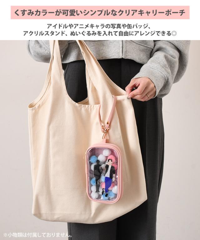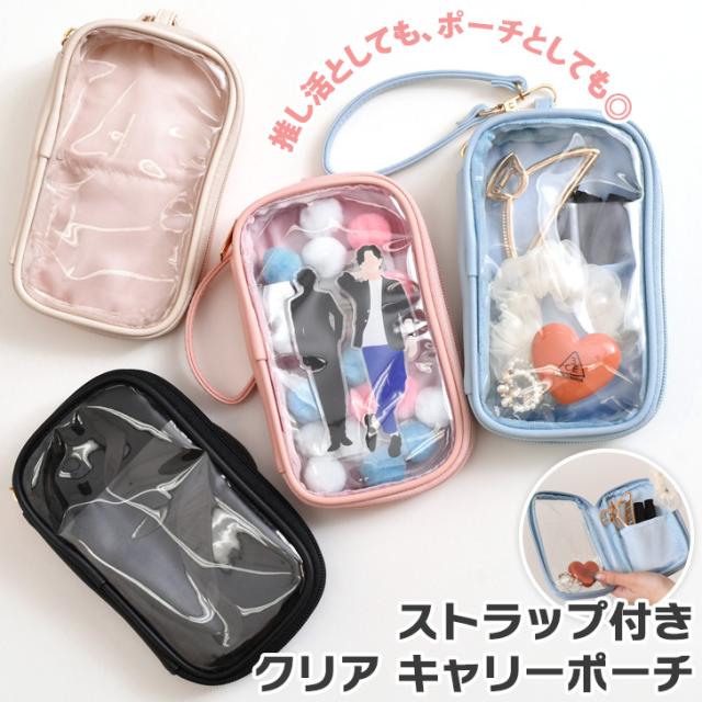 新作 ストラップ付き クリア キャリーポーチ クリアポーチ アクリルスタンドポーチ ミニポーチ 小物入れ 推し活 オタ活 推し 推し色 推しカラー グッズ ちびぬい ぬいぐるみ アクスタケース 持ち運び シンプル