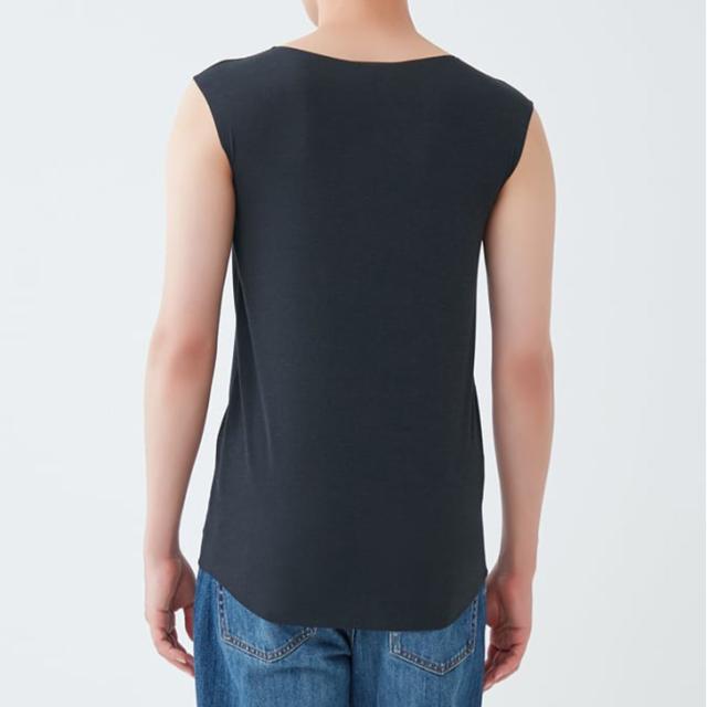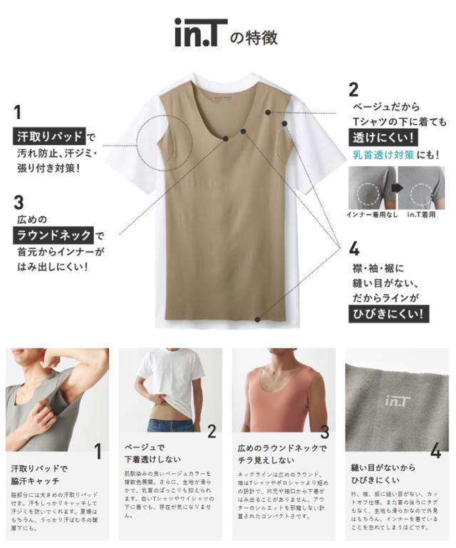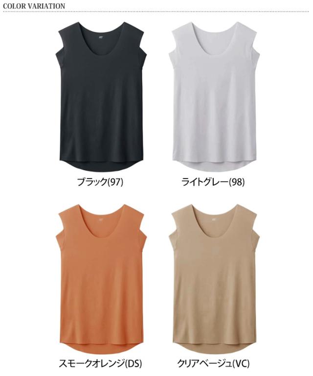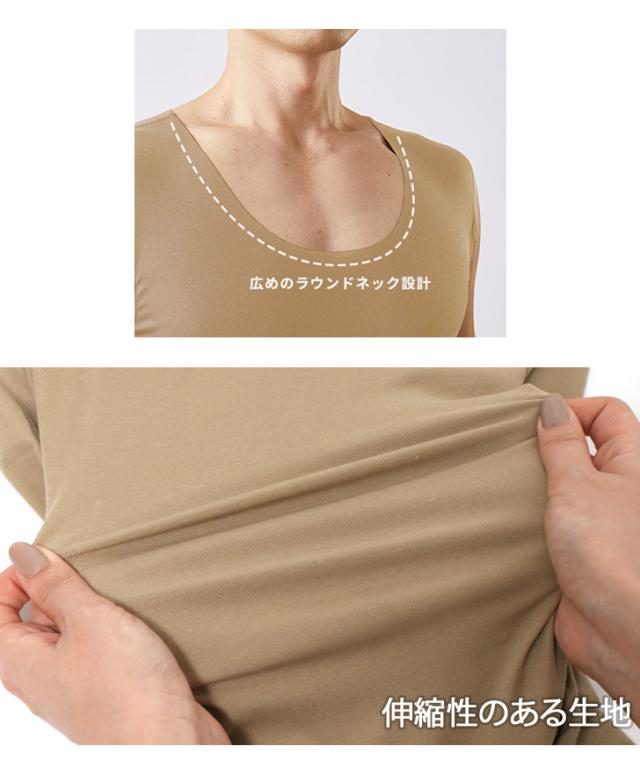 一般的なインナーよりネックラインが広く、インナーのチラ見えやはみ出しを防ぎます。