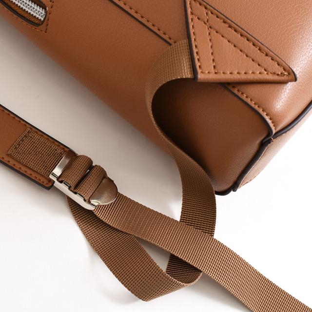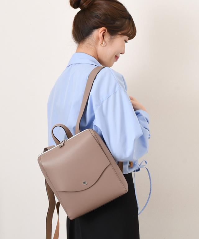 「オンオフで使える軽いカバン」をコンセプトに開発した合成皮革を使用したシンプルなデザイン。