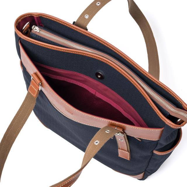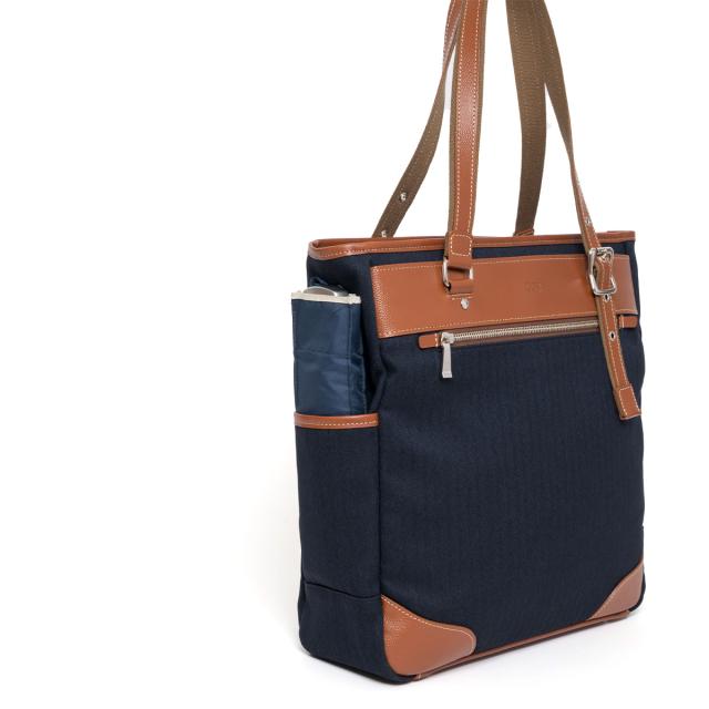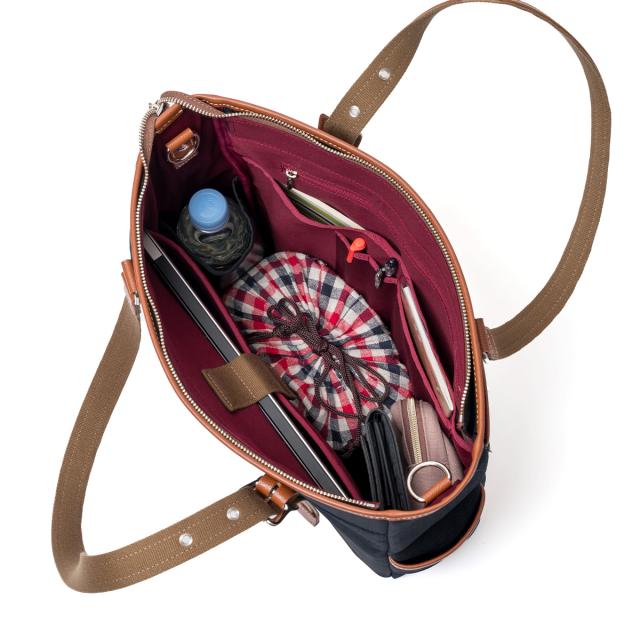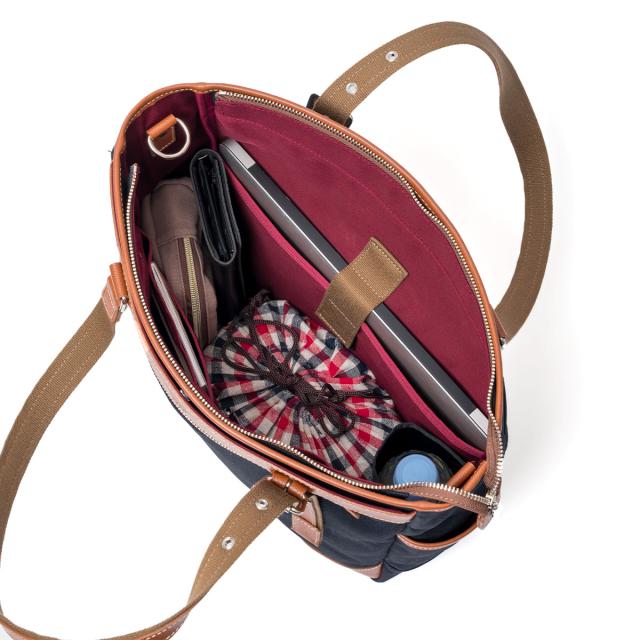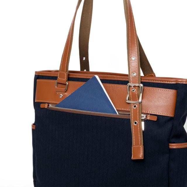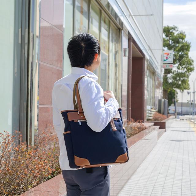 タブレット用のクッション付きポケットや、収納ポケットの充実など機能面を高めた、安心の日本製バッグです。