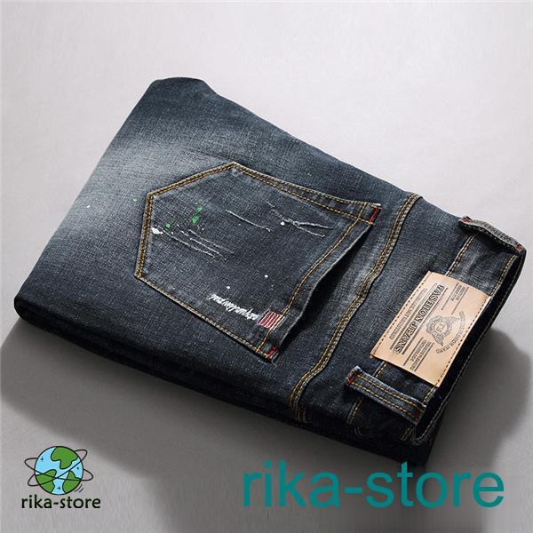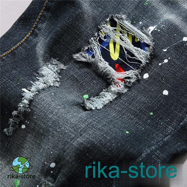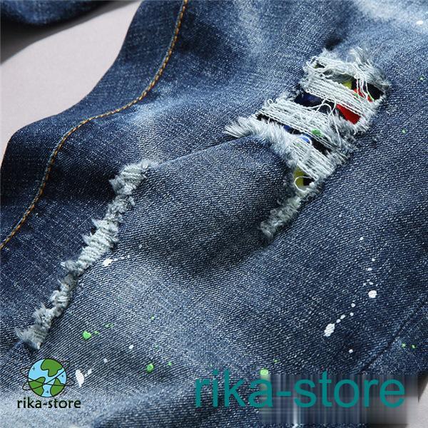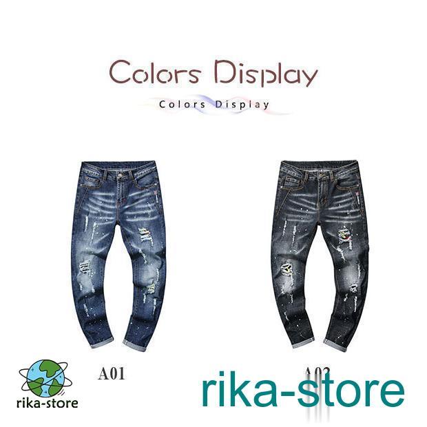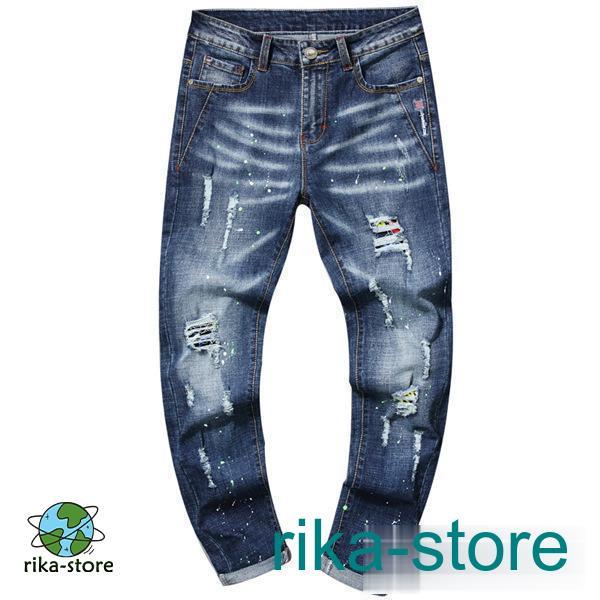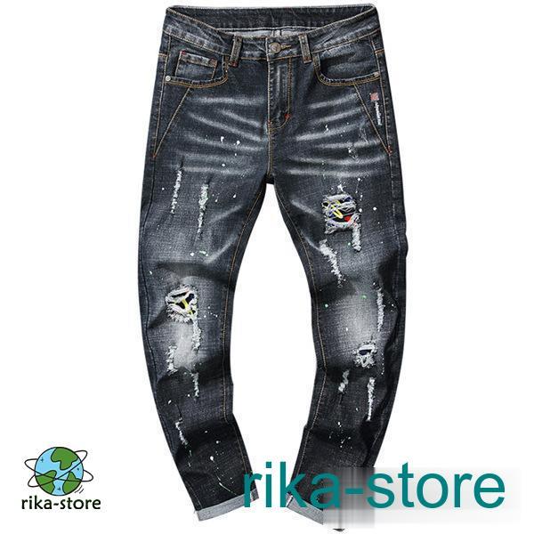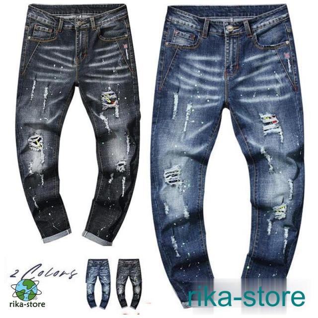 爆売中 デニムパンツ メンズ 秋 スキニーデニム ボトムス ジーンズ ジーパン 個性的 欧米 カジュアル ダメージ ユーズド ズボン アンクルパンツ
