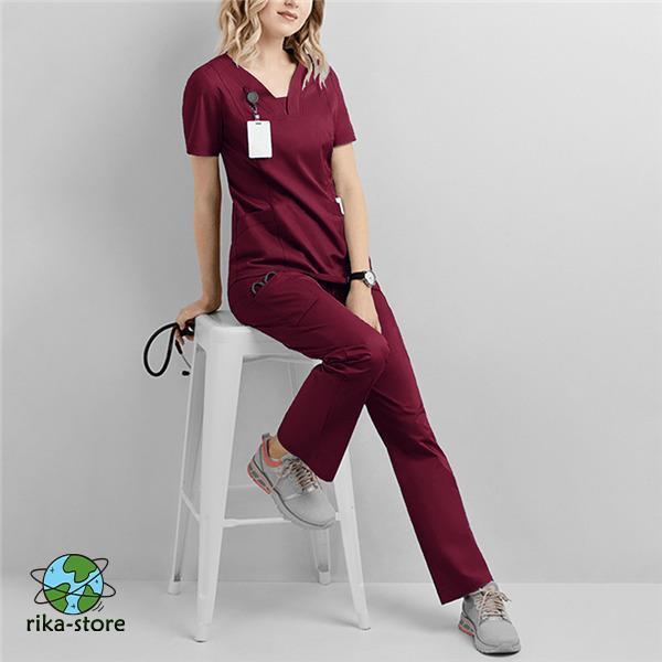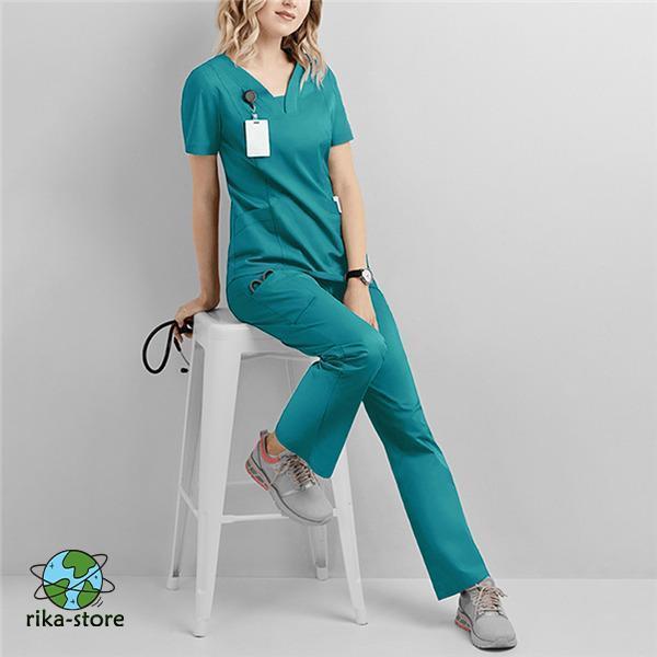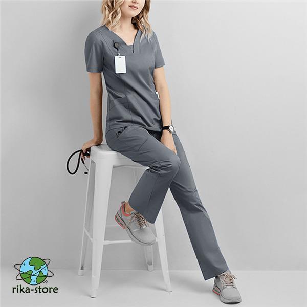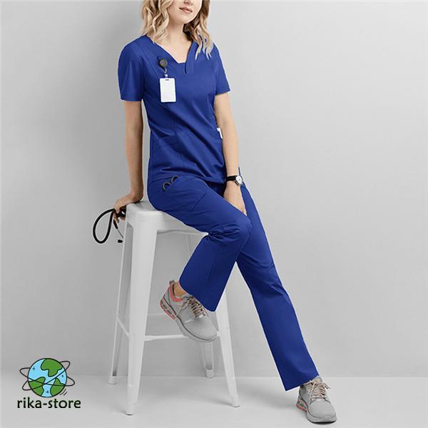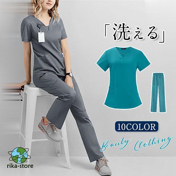 ナース服 スクラブ 白衣 レディース 上下セット セットアップ 女性用 半袖 制服 看護師 士 病院 無地 医者 快適 春秋 夏物 大 洗える