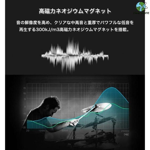 音の解像度を高め、クリアな中高音と重厚でパワフルな低音を再生する300kJ/m3高磁力ネオジウムマグネットを搭載。