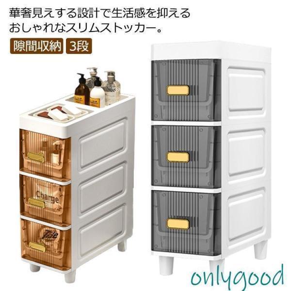 隙間収納 スリムストッカー 幅18cm 3段 収納ストッカー すき間収納 ラック 引き出し キッチン収納 シンク横収納 すきま すき間 スリム収納ラッ