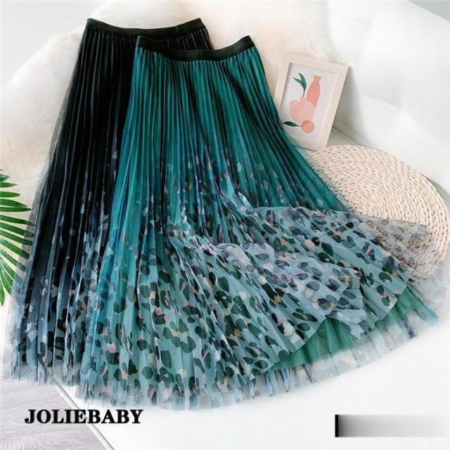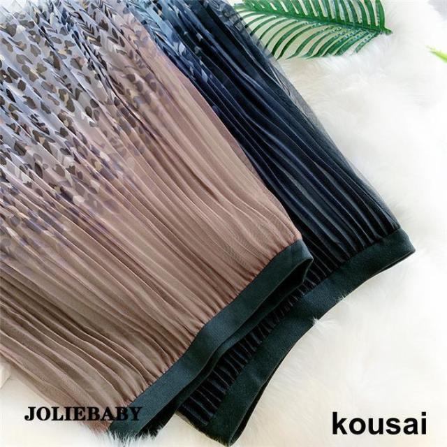 プリーツスカート ロングスカート プリーツ フレアスカート ボトムス グラデーションスカート ヒョウ柄 スカート レディース 春 夏 秋 ウエストゴム トレンド