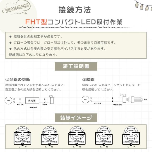 ★グロー式以外(インバーター式、ラピッド式、電気スタンドなど):配線工事が必要です。安定器を取外しAC電源と直結してください。工事は専門業者とご相談ください。