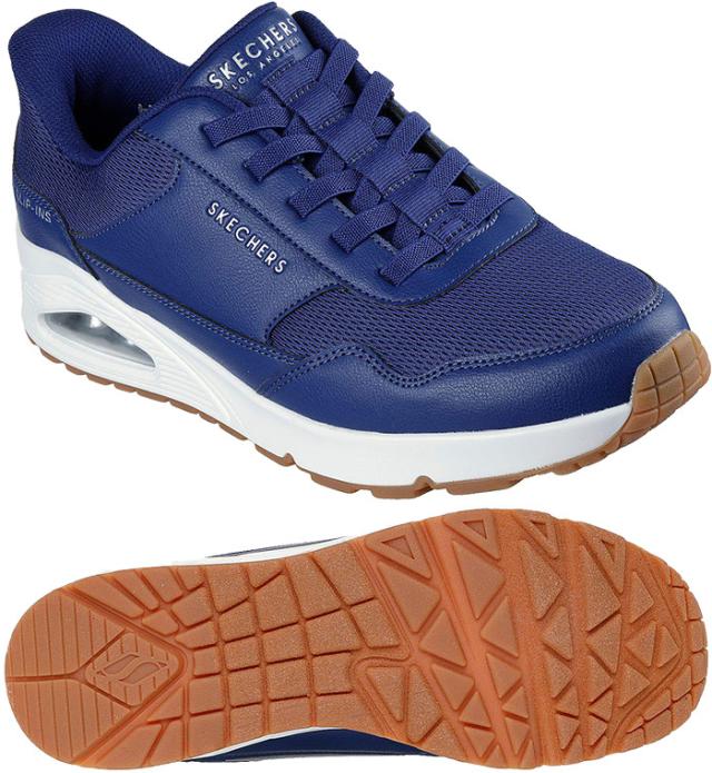 ウノ-バンクシア。スケッチャーズ独自のHEEL PILLOWを採用したこのNOT-TIE FITファッションスニーカーは、デュラレザーのアッパーにストレッチシューレース、クッション性に優れたSKECHERS AIR-COOLED MEMORY FOAMインソール、目に見えるSKECH-AIRエアバッグミッドソールを備えています。