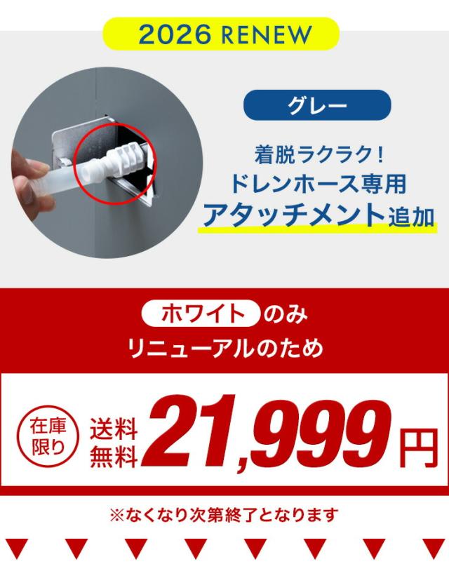※2026年4月3日より、ドレンホースと本体の接続部にアタッチメントを追加しました。(グレーのみ)