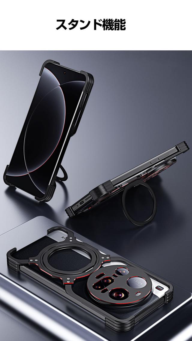 シャオミ Xiaomi 15 15 Ultra クリア ケース カバー アルミ合金素材 CASE 軽量 持ちやすい 耐衝撃カバー レンズ保護 通気性 金属 優れた放熱性能 便利 実用 人気 耐衝撃 リング付き スタンド機能 360度回転 強化ガラスフィルム おまけ付き