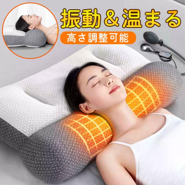 即納 枕 肩こり マッサージ枕 電動マッサージ枕 ストレートネック 加熱 高さ調整 通気性 仰向け 横向き 肩サポート 体圧分散 頸
