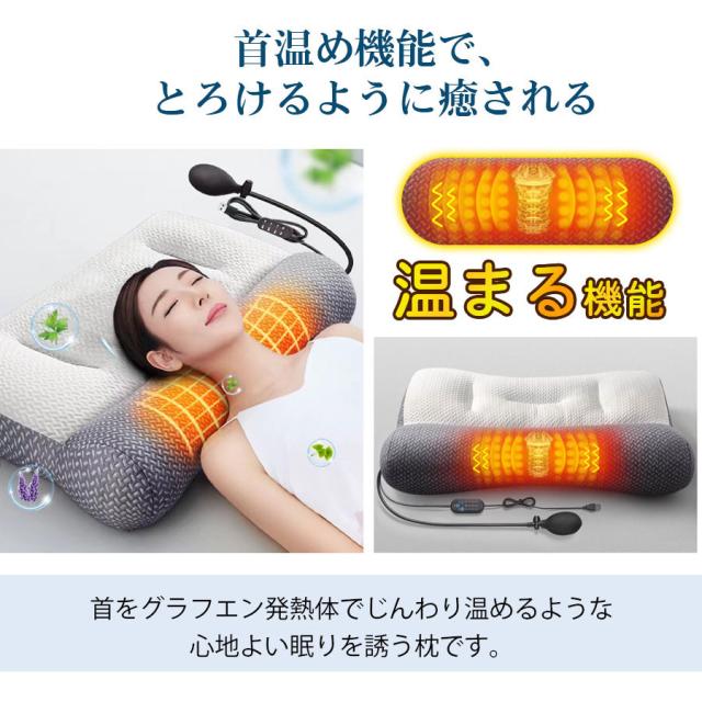 - 自分で首の高さを微妙に調節出来るので、とてもオススメです。毎日でも少し眠ってからでも違う高さに簡単に調節出来るので、本当にピッタリ合った状態で眠れます。しかも首元にヒーター機能が有って快適です。マッサ...