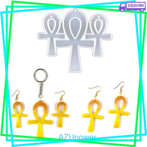アンククロス樹脂モールド、3 IN 1 シリコンモールド エポキシ樹脂製 アンクネックレス イヤリング エポキシジュエリー ペンダント