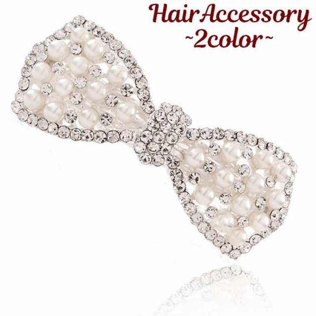 バレッタ 髪飾り リボンモチーフ ヘアアクセサリー まとめ髪 ヘアアレンジ ロングヘア パール風 可愛い おしゃれ 清楚 綺麗 輝く お出かけ デート