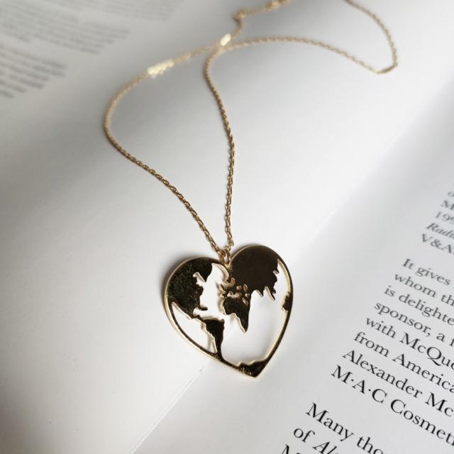 ネックレス ペンダント レディース 女性 ファッション小物 雑貨 チェーン ハート 世界地図 マップ ゴールドカラー シンプル かわいい キュート お