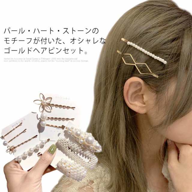 | パール・ハート・ストーンのモチーフが付いた、オシャレなゴールドヘアピンセット。 単品使いはもちろん、重ね付けでオシャレ度アップ。 デイリー使いから、フォーマルシーンにもオススメ! | |
