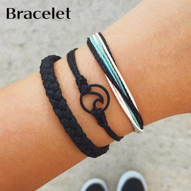 ミサンガ ブレスレット 3点セット レディース メンズ 男女兼用 調節可能 重ね付け 波 モチーフ ワックスコード ミサンガ おしゃれ ギフト プレゼ