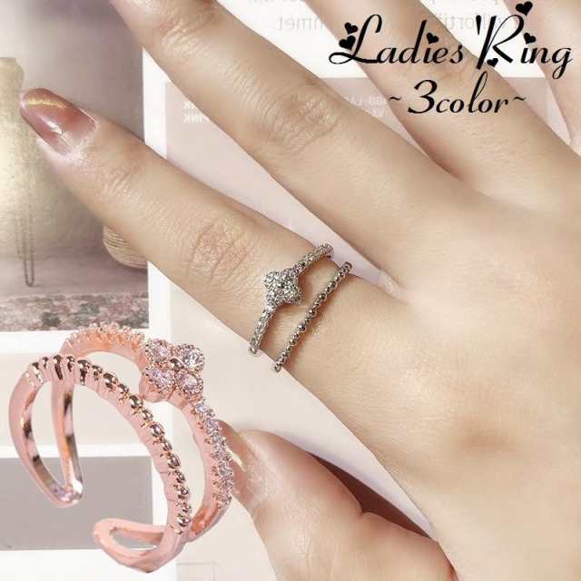 指輪 リング 2連 ラインストーン キラキラ レディース アクセサリー 2重 細い 華奢 花 フラワー おしゃれ きれいめ 上品 可愛い かわいい 女