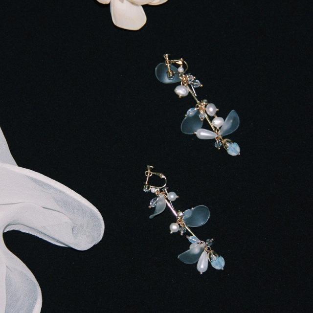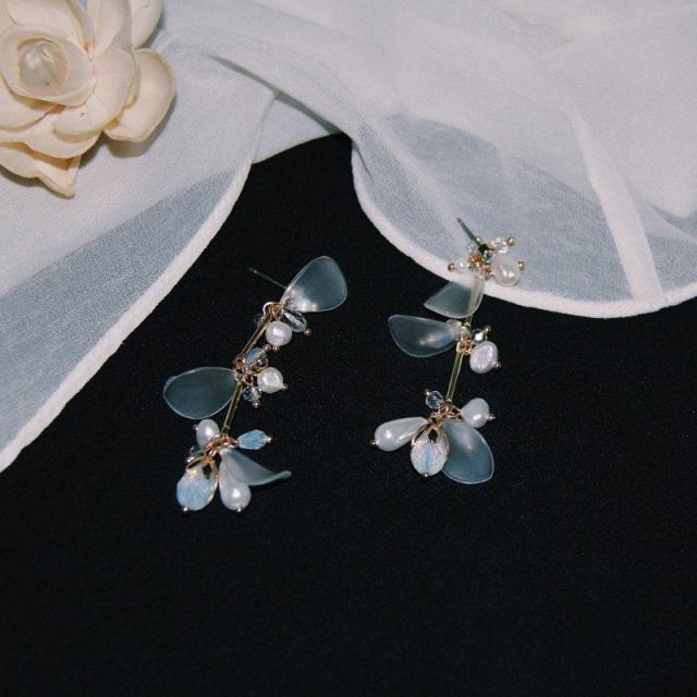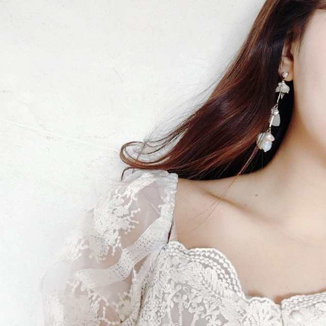 ピアス イヤリング レディース ロングピアス ロングイヤリング フェイクパール 花 花びら 白 ホワイト 揺れる ゆらゆら 長い 長め かわいい きれ