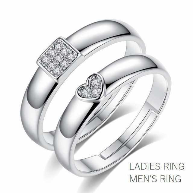 指輪 ペアリング フリーサイズ アクセサリー レディース メンズ オープンリング シルバー925 スクエア ハート ラインストーン 女性用 男性用 お