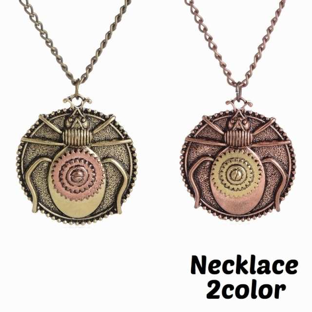 ネックレス ペンダント 男女兼用 レディース メンズ アクセサリー スチームパンク風 レトロ風 ヴィンテージ風 アンティーク風 ラウンド 昆虫 歯車