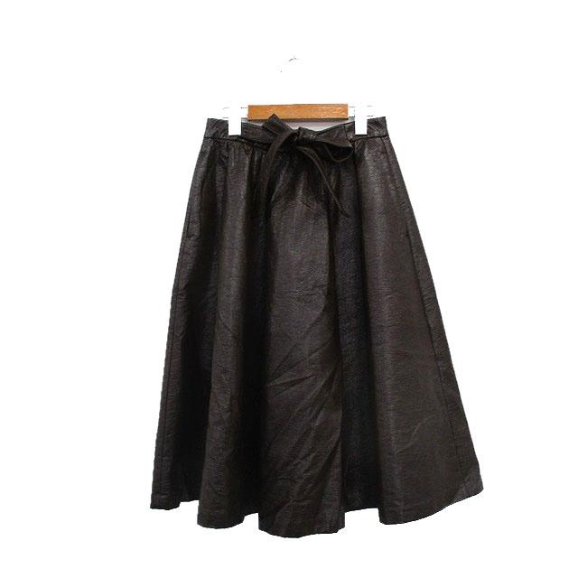 【中古】セオリーリュクス theory luxe フェイクレザー スカート フレア ロング リボン 38 ブラウン /KT28 レディース