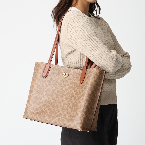 コーチ トートバッグ ウィロウ トート シグネチャー キャンバス A4サイズ対応 ブラウン レディース COACH C0693 A4対応