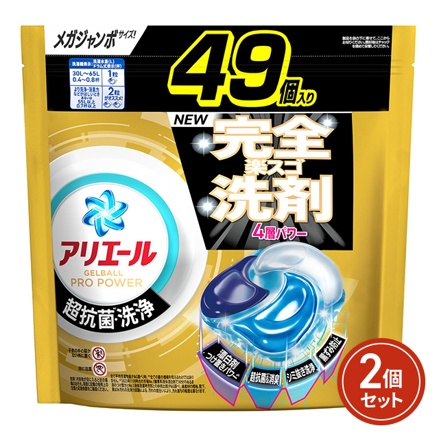 アリエール ジェルボールプロ パワー 洗濯洗剤 つめかえ メガジャンボ 49個×2個セット 大容量 詰め替え 洗剤