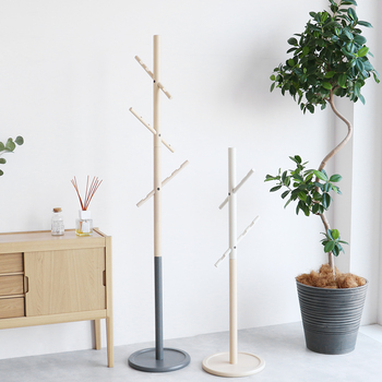 まるでオブジェのように美しい佇まいで、斜めに伸びるフックとすらりとした支柱が、無駄のないスタイリッシュなフォルムを生み出しています。