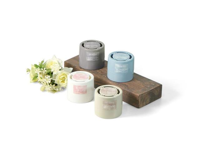 ●トレンドのくすみカラーを採用した固形(吸水ポリマー)タイプの置き型芳香剤