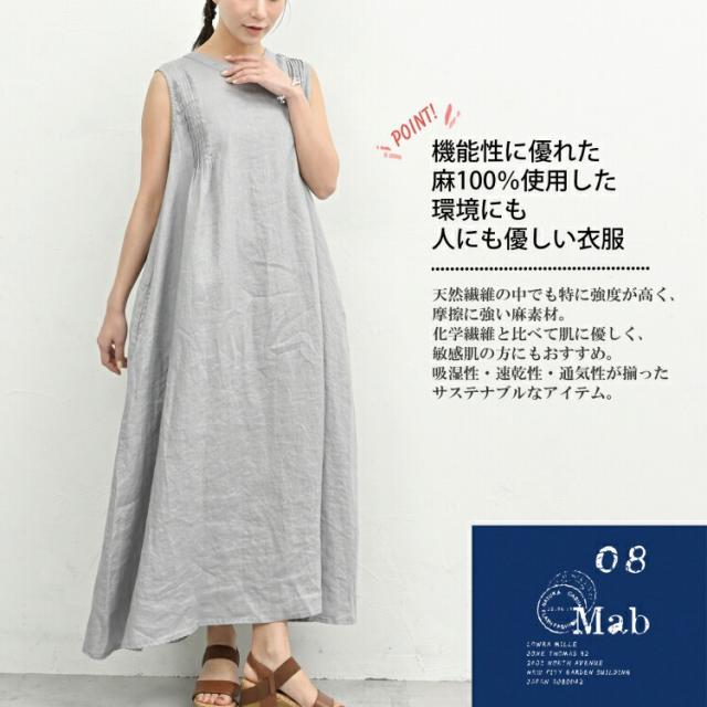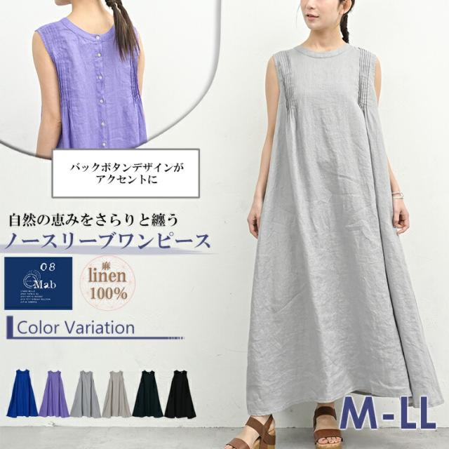 【送料無料】環境にもあなたにも優しいリネン100%素材ノースリーブワンピース。 XL ロング丈ワンピース ゆったりサイズ ぽっちゃり女子 プラスサイズ 大きいサイズ レディース ノースリーブワンピース ロング丈ワンピース ロングワンピース Aラインワンピース リネンワンピース ロング丈 マキシ丈 ミモレ丈 ノースリーブ 袖無し 前後差ピンタック Uネック クルーネック ラウンドネック バックボタン リネン100% linen100 麻素材 08mabブランド 春服 夏服 春物 夏物 春ワンピース 夏ワンピース 春ワンピ 夏ワンピ ゆったり ラクラク 体型カバー 大人 カジュアル ナチュラル フェミニン きれいめ かわいい かっこいい 着こなし おしゃれ 定番 春コーデ 夏コーデ ファッション 大きめ 女性 婦人用 ミセス 30代 40代 50代 2025 春新作 春 夏 黒 紺 紫 青 灰色 F M L LL 3L 9号 11号 13号 15号 17号 mab-ss-op0002