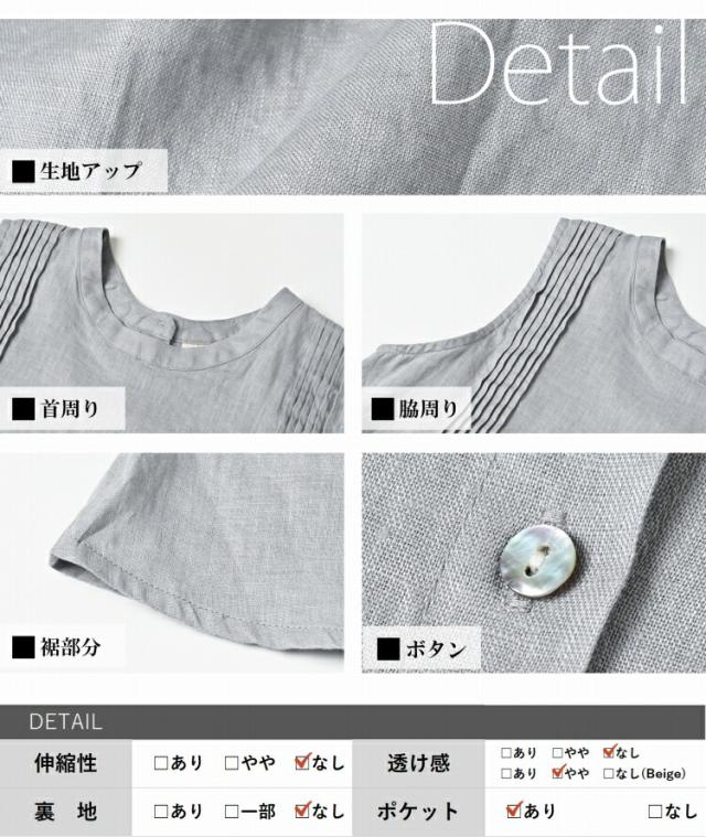 環境にもあなたにも優しいリネン100%素材 ノースリーブワンピース。 天然繊維の中でも特に強度が高く、摩擦に強い麻素材。 吸湿性や通気性に優れ 敏感肌の方にもおすすめです。 |