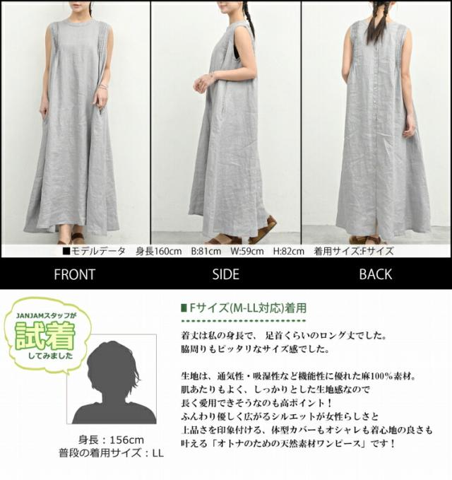 【送料無料】大きいサイズ レディース 前後差ピンタックワンピース ロング丈 ノースリーブ リネン素材 08mab linen100 F フリーサイズ ゆったりサイズ ぽっちゃり女子 プラスサイズ