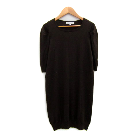 【中古】自由区 オンワード樫山 ニットワンピース ミニ丈 七分袖 ビーズ装飾 38 M 茶 ブラウン /SY6 レディース