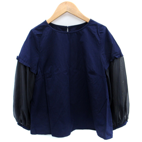 【中古】リミットレスラグジュアリー カットソー 長袖 ラウンドネック チュール 切替 フリル F 紺 ネイビー