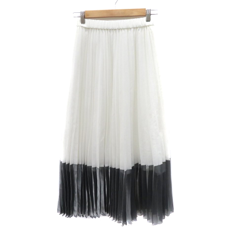 【中古】シープラス C+ プリーツスカート ロング丈 マキシ丈 38 M バイカラー 白 ホワイト /YK5 レディース