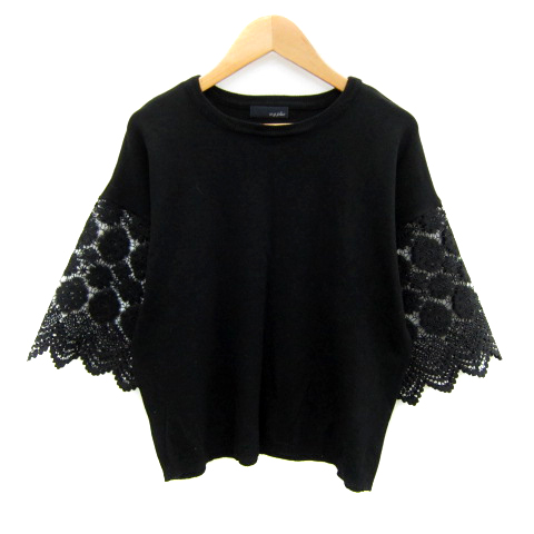 【中古】エージープラス ニット カットソー 七分袖 切替 レース シースルー M 黒 ブラック /SY40 レディース
