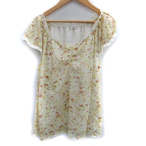 【中古】アクシーズファム カットソー ノースリーブ 総柄 フリル M マルチカラー 黄 イエロー 茶 ブラウン