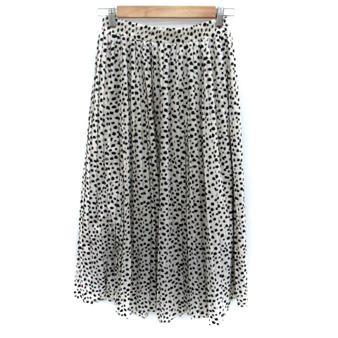【中古】ザショップティーケー THE SHOP TK プリーツスカート ロング丈 ダルメシアン柄 M アイボリー 黒 ブラック