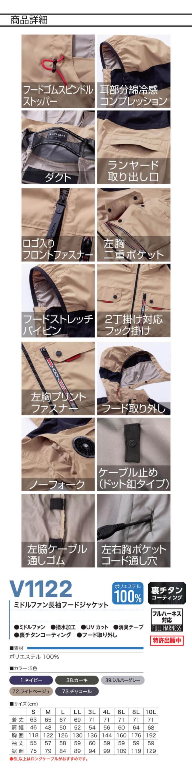 HOOH 快適ウェア ミドルファン長袖フードジャケット(ファンなし) V1122 村上被服