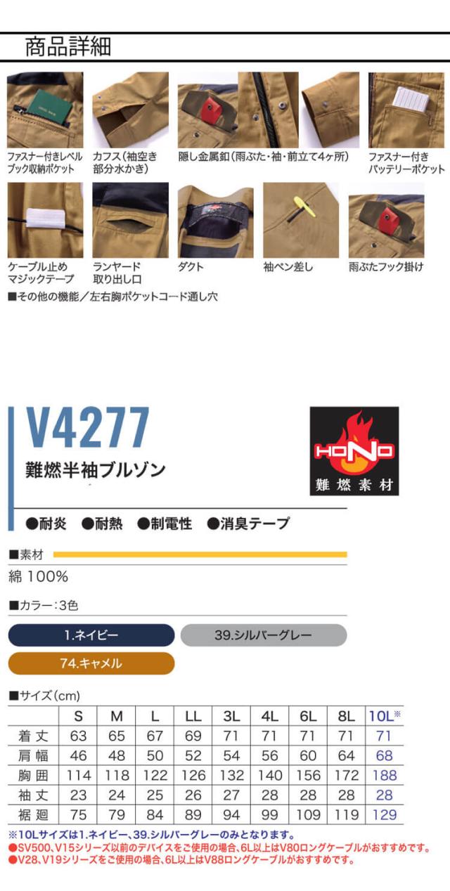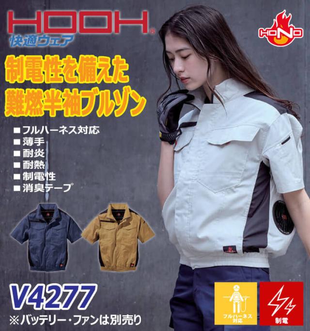 HOOH 快適ウェア 難燃半袖ブルゾン(ファンなし) V4277 サイズ10L 村上被服