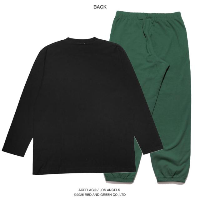 【48%OFF】ACE FLAG 上下セット 長袖 ブランド スケボー メンズ 春秋冬用 黒 大きいサイズ エースフラッグ セットアップ ロンT スウェットパンツ ビッグシルエット 深緑 グリーン 緑系 アメ車 b系 ヒップホップ ファッション ダンス ストリート系 ハイ AF-SE-LT-143