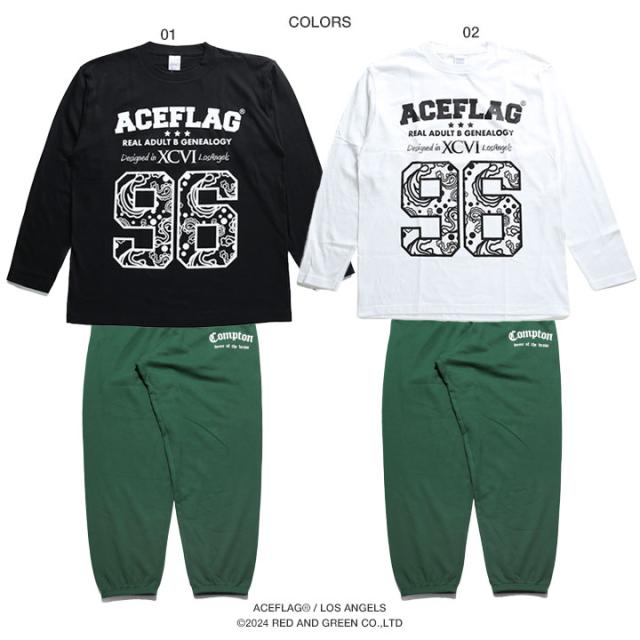 【48%OFF】ACE FLAG 上下セット 長袖 ブランド スケボー メンズ 春秋冬用 白 黒 大きいサイズ エースフラッグ セットアップ ロンT スウェットパンツ 96 ペイズリー柄 スポーツ ビッグシルエット 深緑 b系 ヒップホップ ファッション ストリート系 ハイ AF-SE-LT-148