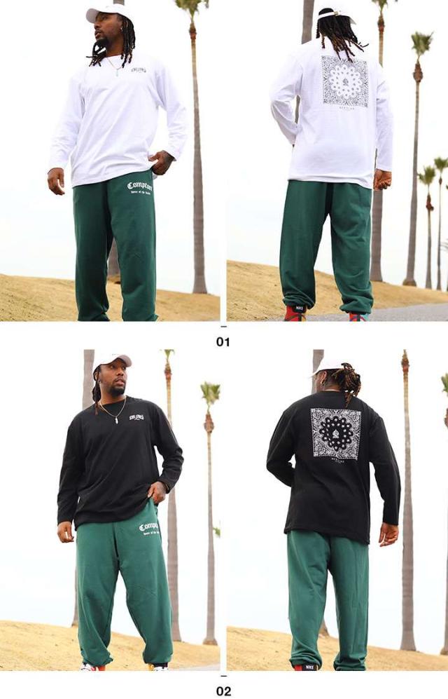 ロンTに『ペイズリー柄のBOXロゴ』、スウェットロングパンツに『Compton』をドロップした上下セット。