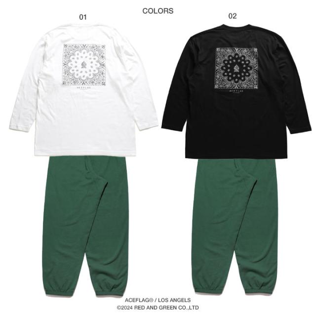 【48%OFF】ACE FLAG 上下セット 長袖 ブランド スケボー メンズ 春秋冬用 白 黒 大きいサイズ エースフラッグ セットアップ ロンT スウェットパンツ スペード ペイズリー柄 ビッグシルエット 深緑 b系 ヒップホップ ファッション ストリート系 ハイ AF-SE-LT-151